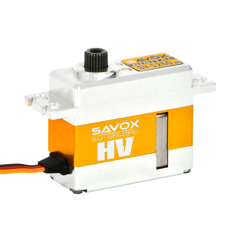 The SV-1260MG is a mini-sized, digital, high voltage, metal-geared servo with an all aluminum case and metal gearset, making it one of the strongest and fastest mini servos available.