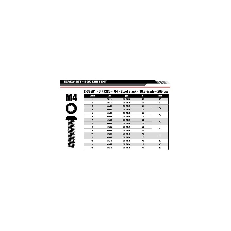 Screw Set M4 - Hex Button Head - DIN 7380 - Steel Black - 10.9 Grade - 15 Sizes - 265 pcs