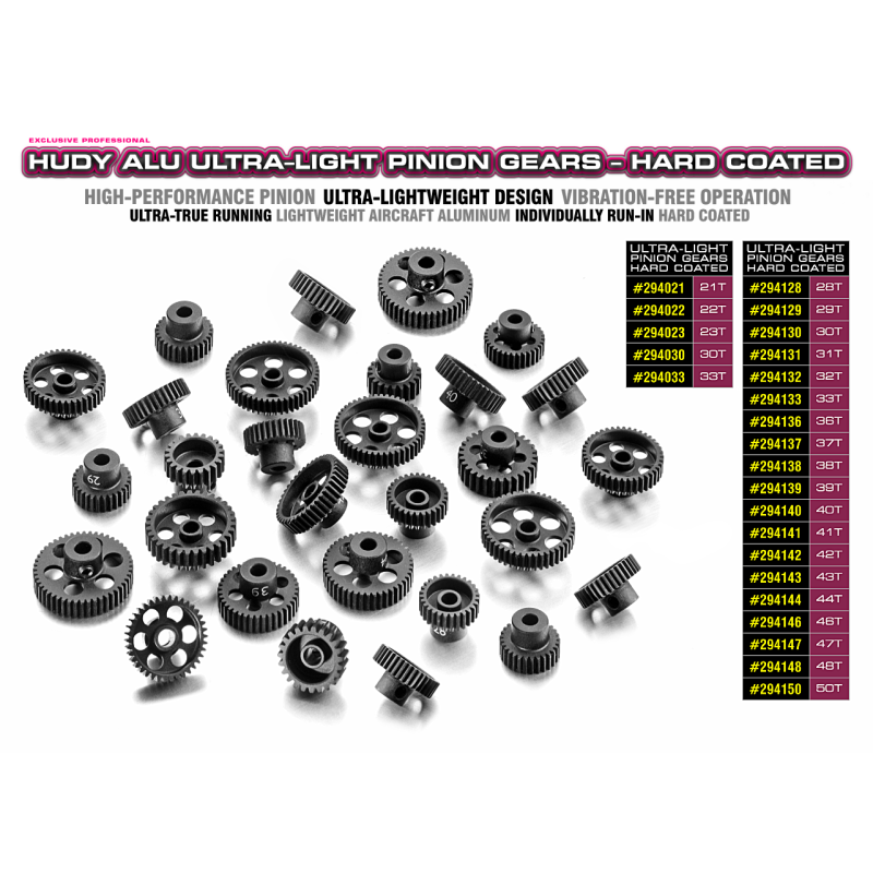 PIÑON DE ALUMINIO ULTRA LIGERO HUDY - TRATAMIENTO ENDURECIDO - 29T / 64