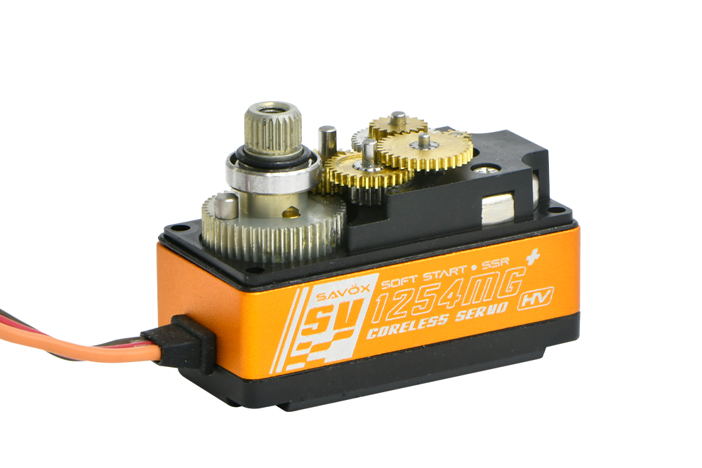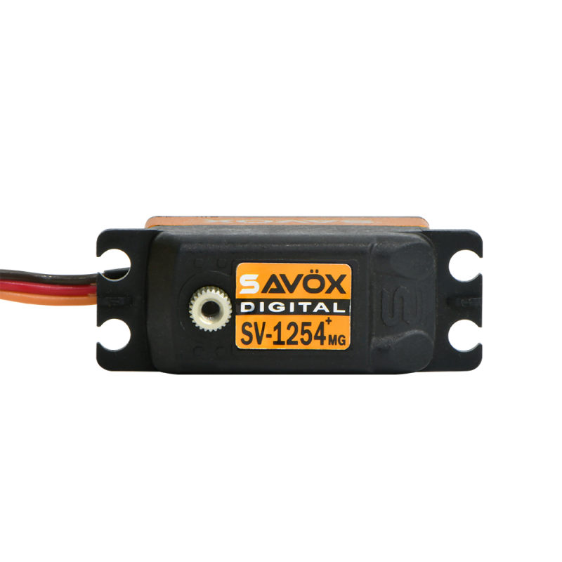 El servo SV-1254MG Plus es un servo de alto rendimiento con motor sin núcleo, que ofrece buen par y un tiempo de respuesta rápido en un diseño de perfil bajo.